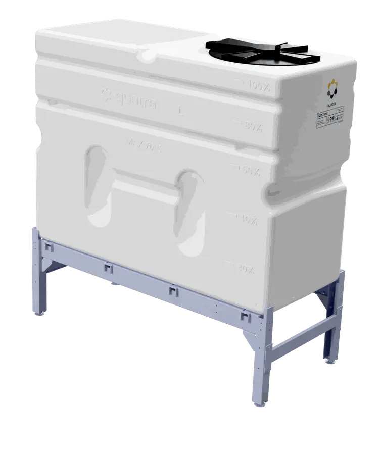 De bulktank is doorzichtig met aanduidingspijlen, zodat je het volume eenvoudig kan aflezen. Daarnaast is er een geïntegreerde volumesensor die continu het niveau in de tank meet en stuurt de gegevens digitaal naar onze planning doorstuurt. Zo weten wij precies wanneer bij te vullen.
